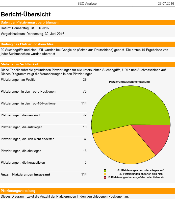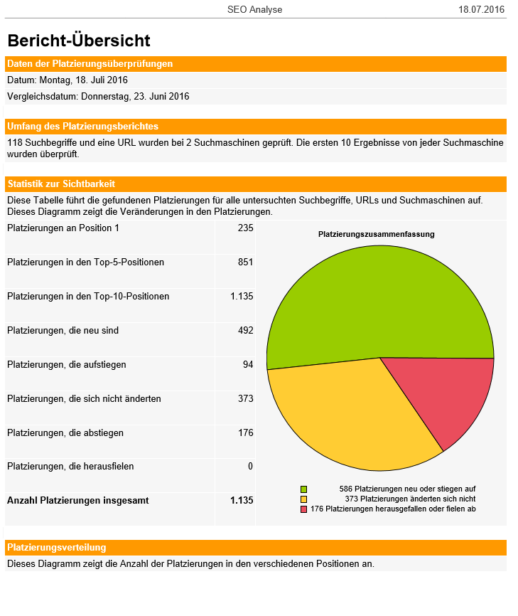 - 20. Monatliches Reporting über die Platzierungsergebnisse
