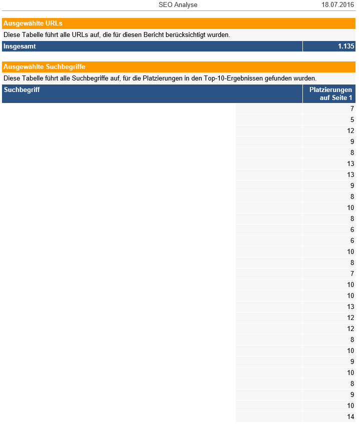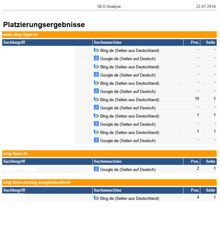 - 2. der Platzierungsbericht Ihrer Homepage in Suchmaschinen 9 * pro Jahr